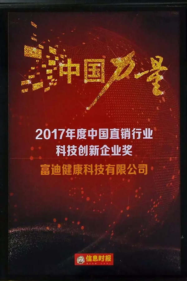 在颁奖典礼上,富佑集团董事局主席陈怀德先生荣膺“中国力量·2017年度中国直销行业风云人物奖”、富迪健康科技有限公司荣获“中国力量·2017年度中国直销行业科技创新企业奖”。